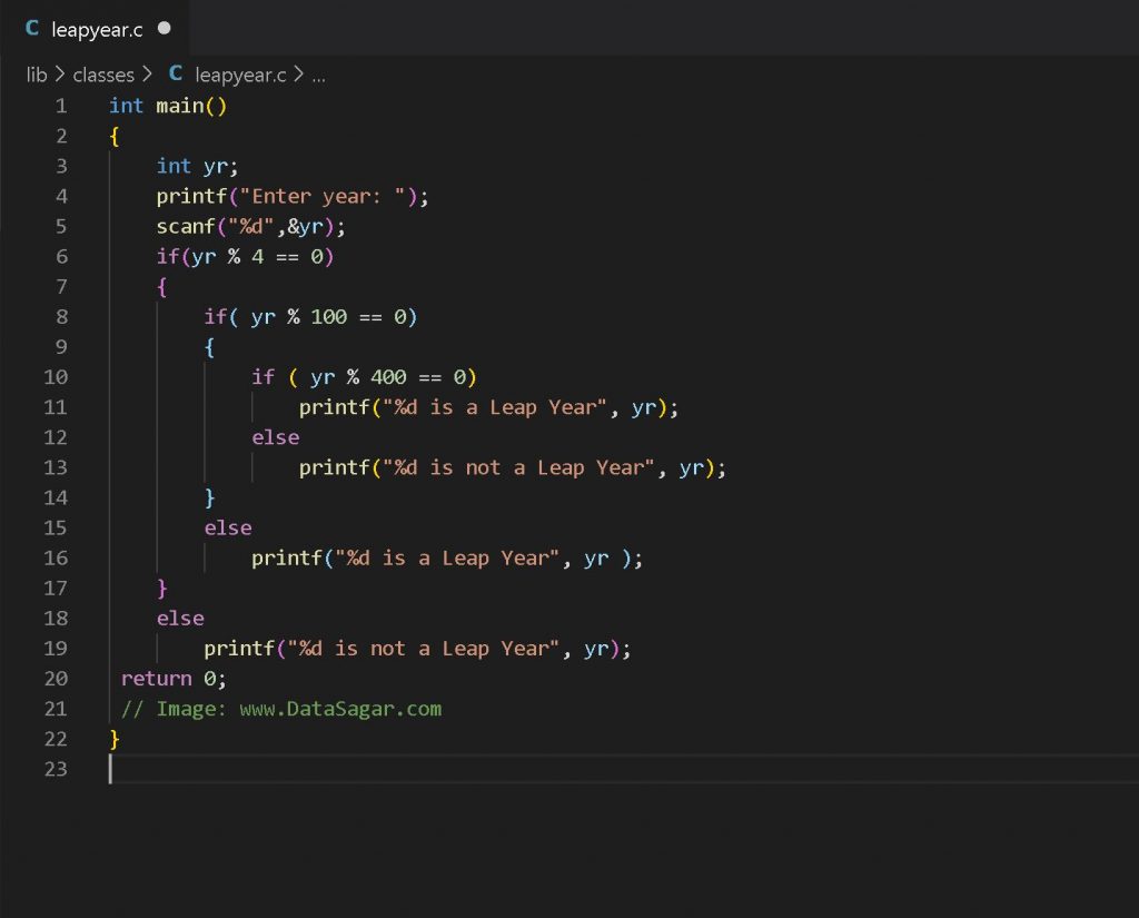According to the definition, a year that is divisible by 4, 100 and 400 is known as a leap year. Also if a year is exactly divisible by 4 but not by 100 then it is also a leap year. Another important thing you must note is, if a year is exactly divisible by 4 and 100 but not by 400 then it is not a leap year. Based on this general understanding, we’ll build a programming logic to determine if a year entered by the user is leap year or not. We’ll also discuss how to print leap years between some range in this article.
